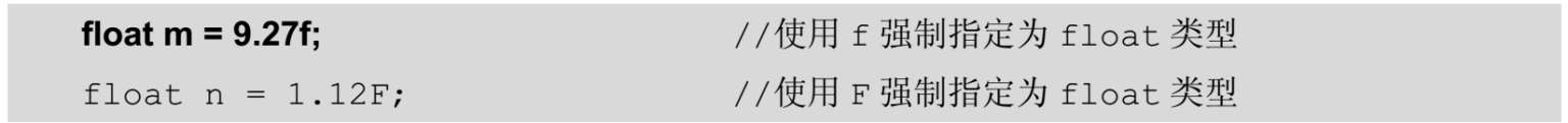 在程序中使用float类型时,必须在数值的后面跟随f或F,否则编译器会直接将其作为double类型处理。