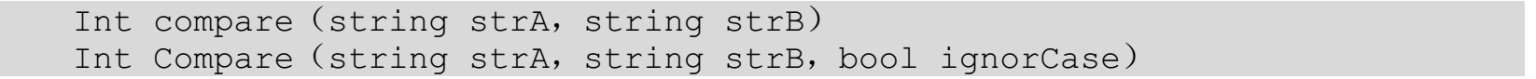 ignorCase:是一个布尔类型的参数,如果这个参数的值是true,那么在比较字符串时就忽略大小写的差别。Compare方法是一个静态方法,所以在使用时,可以直接引用。