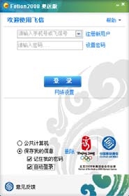 中国移动的飞信软件相信很多人都用过(如飞信2008奥运版,如图1.2所示),使用它发送短信方便快捷,它可以通过PC客户端、手机客户端和WAP方式登录,而且发送短信本身是免费的,该系统正是由C#语言开发的。