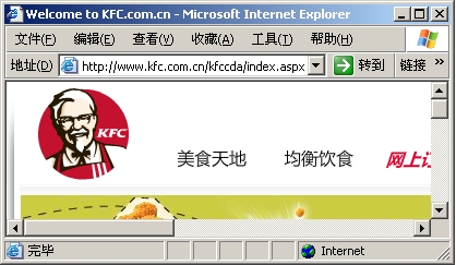 世界著名的快餐企业——肯德基,其中国区网站是(如图1.3所示)使用ASP.NET技术开发的,而ASP.NET技术的主要后台编程语言正是C#。