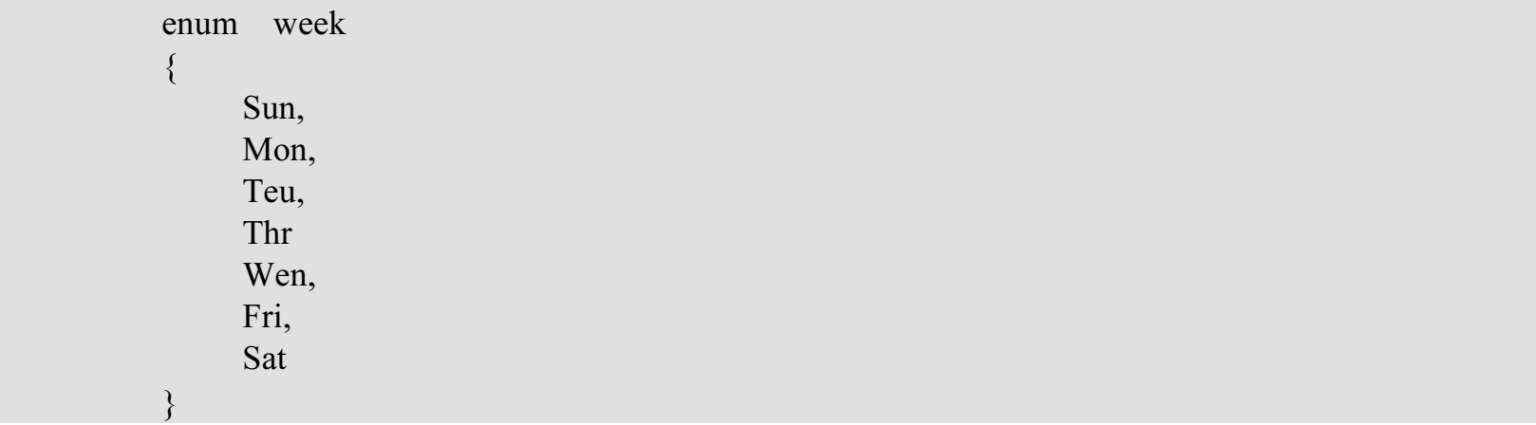 并在程序中定义枚举类型变量enum week week1;