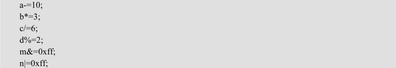 C语言同样支持其他算术运算符和逻辑运算符的复合赋值操作,例如: