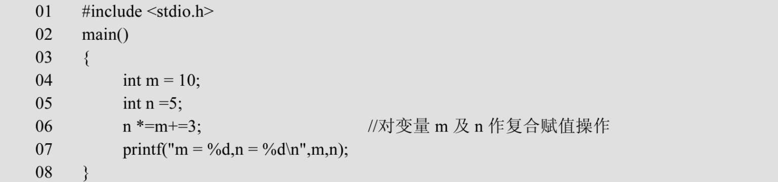 程序第 6 行为复合赋值运算,变量m和n都被重新赋值。由于赋值运算符的右结合性,因此第 6 行展开为: