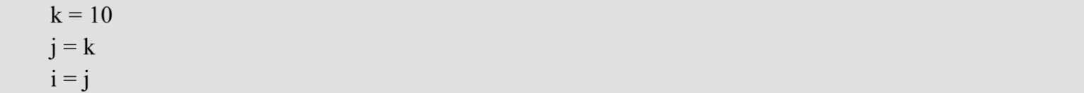 有时需要对几个变量赋予同一个值,这时可以使用连续赋值表达式,例如: