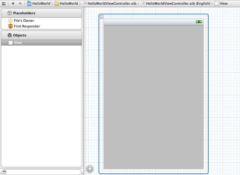 点击HelloWorldViewController.xib文件,可以看到Interface Builder界面如图2-14所示。