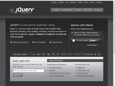 jQuery的官方网站为http://jquery.com,如图1-1所示。