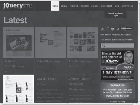 应用jQuery库的网站如http://jquerystyle.com/,如图1-2所示。