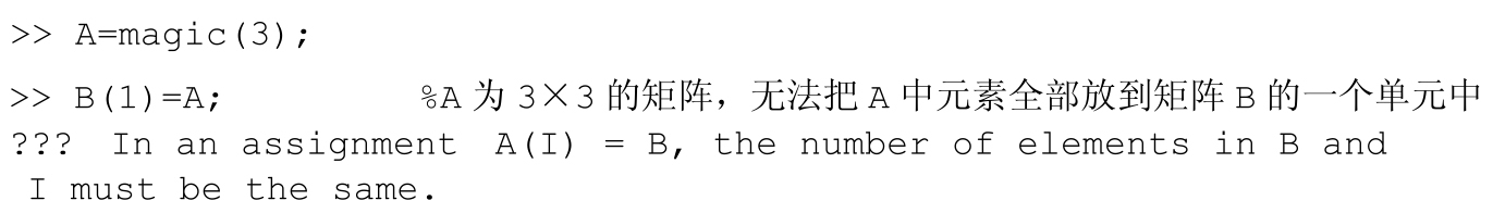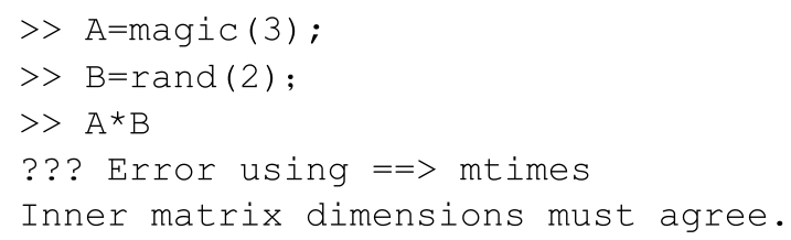 在进行矩阵运算时,由于运算符(=、+、-、/、*等)两边的运算对象维数不匹配引起错误。