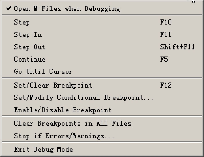 ●Open M-Files when Debugging:调试时打开M文件。