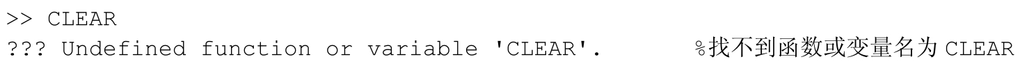 clear命令可用于清除MATLAB工作空间内的变量,但是如果在大写状态下输入,无法完成相应任务,出错提示如下。