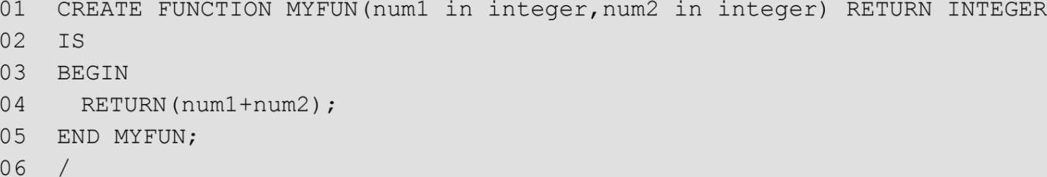 有关在SQL*Plus中编写PL/SQL语句前面已经接触到了,这里只用一个实例来演示如何在SQL*Plus中编写自定义函数。