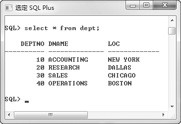 图 2.9 查询DEPT表中的所有数据