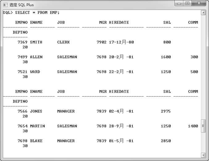 图 2.8 在SQL*Plus中连接数据库并查询数据