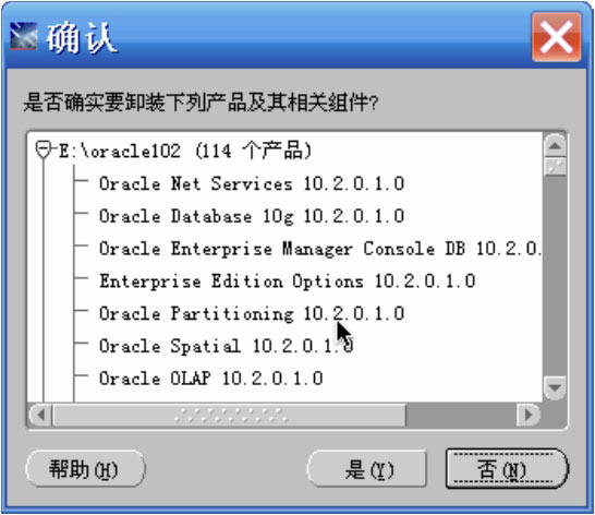 【小贴士(Tip)】 通过OUI卸载Oracle的组件并不一定顺利完成。如果卸载失败,则不要停止,要继续执行下面的卸载步骤。