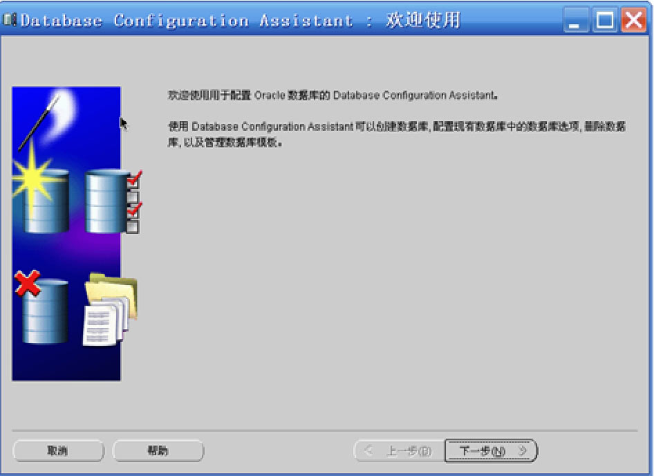 启动DBCA(Database Configuration Assistant),如图2-113所示。