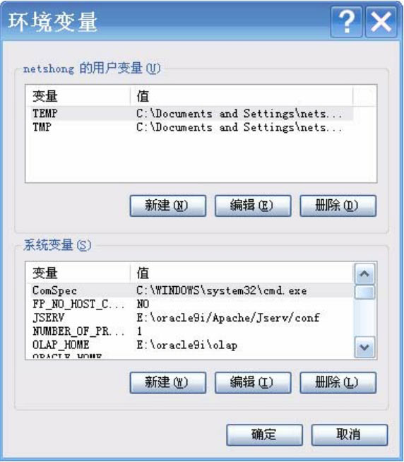 ■ 删除环境变量ORACLE_HOME、ORACLE_SID、TNS_ADMIN、JSERV、WV_GATEWAY_CFG。