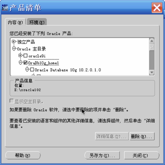 ■ 用Oracle Universal Installer删除Oracle的组件。