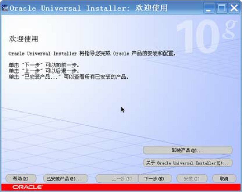 选择要卸载的产品。本机中存在Oracle两个版本(Oracle 9i与Oracle 10g),选择Oracle 10g。