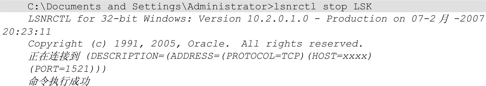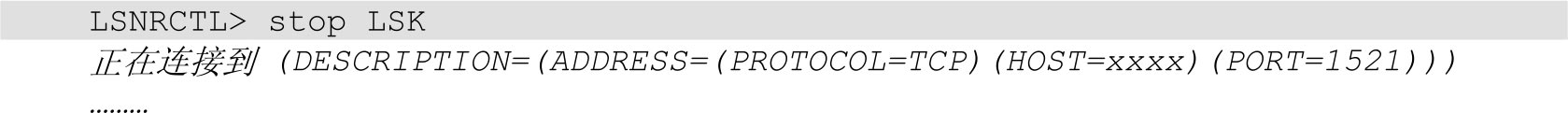 其中,LSK是监听器的名称。如果执行lsnrctl stop命令(没有指定监听器的名称),则该命令将关闭默认的监听器。默认监听器的名称是LISTENER。