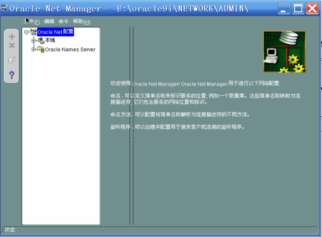 单击“开始”→“程序”→“Oracle”→“Configuration and Migration Tools”→“Net Manager”,出现如图4-8所示的界面。