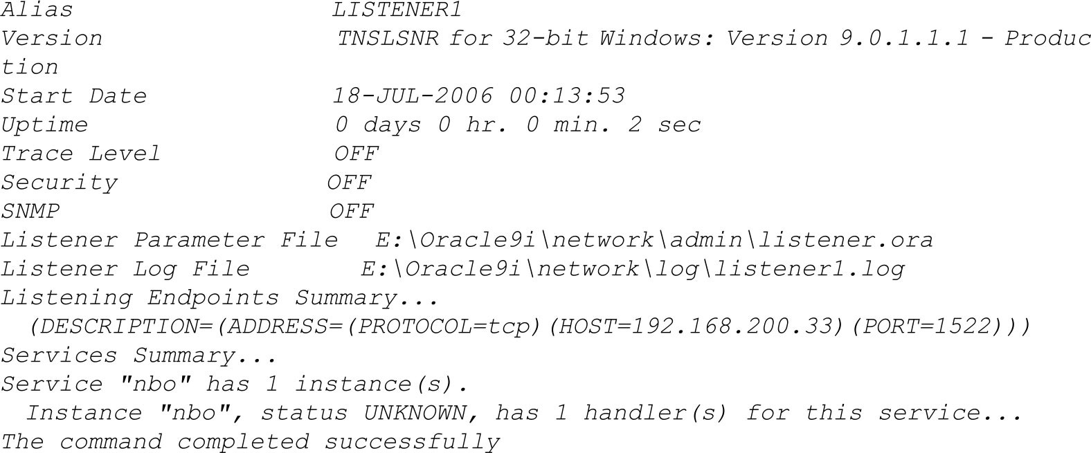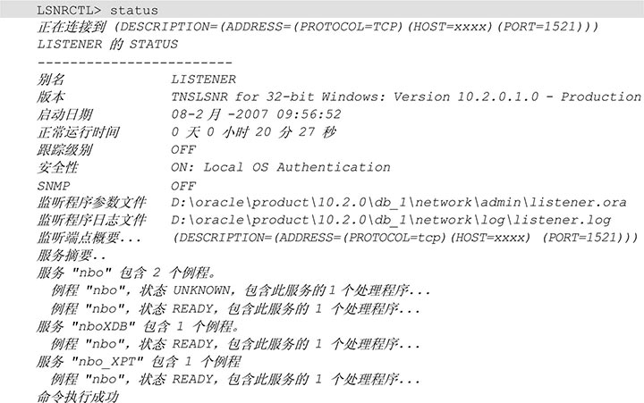 ■ 监听器的名称、监听器的版本号、监听器的启动时间、运行时间、跟踪级别、监听器配置文件listener.ora的位置等。