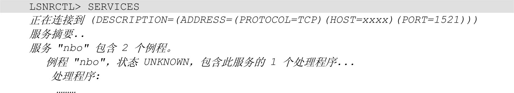 此外,通过监听器的SERVICES命令,我们还可以得到监听器更加详细的信息。如: