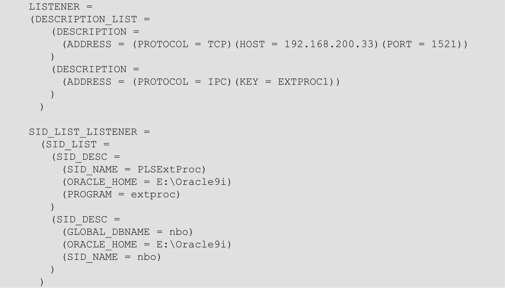 查看文件listener.ora的内容。listener.ora文件当前的内容如下: