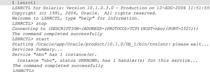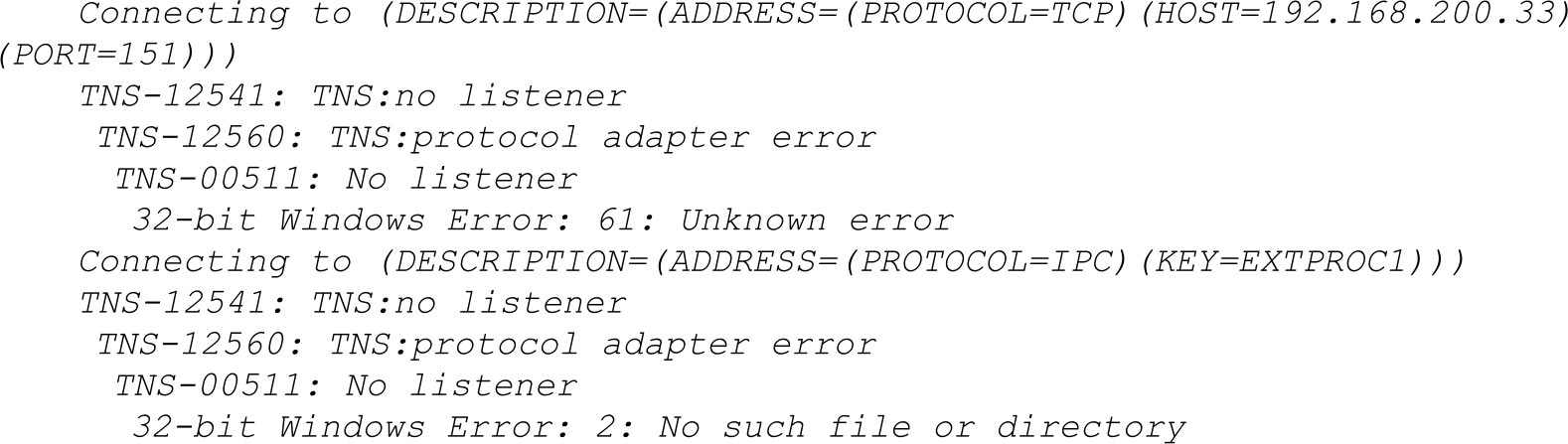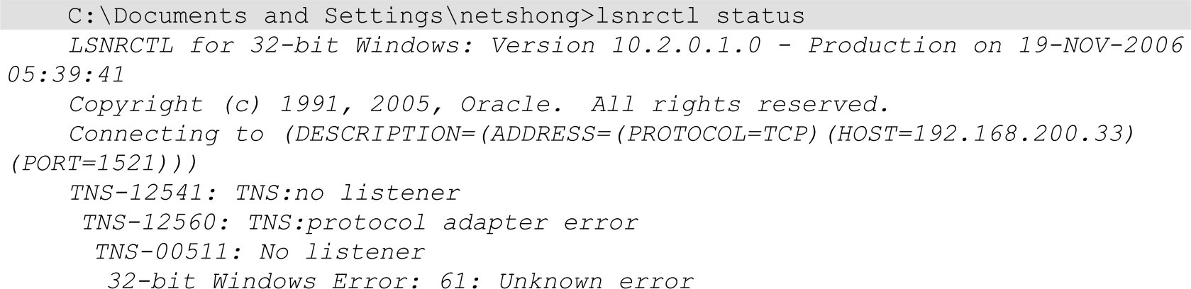 如果监听器被停掉,则执行lsnrctl status命令将会显示类似于如下的信息: