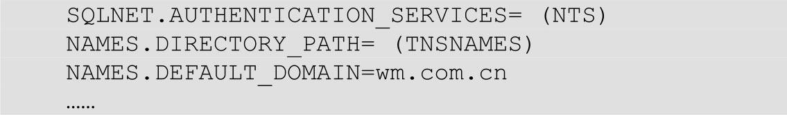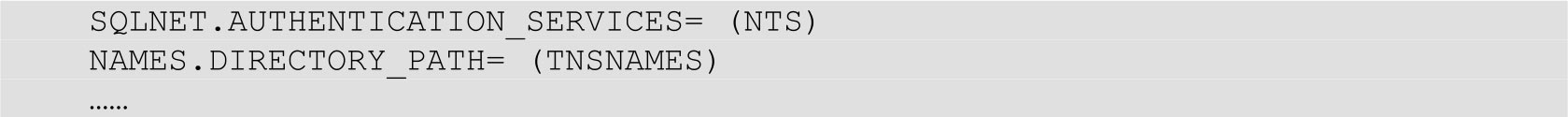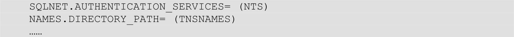 Oracle的认证方式由sqlnet.ora文件中的SQLNET.AUTHENTICATION_SERVICES参数控制。当把sqlnet.ora文件中的参数设置成SQLNET.AUTHENTICATION_SERVICES=(NTS)时,客户端通过操作系统认证的方式登录数据库。