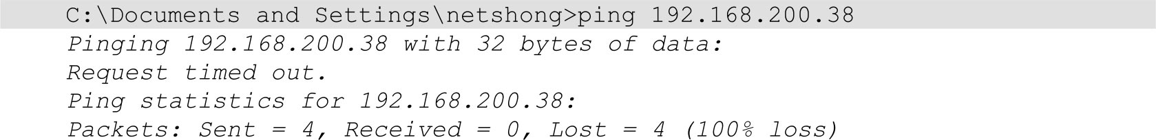 从这里可以看出,我们指定了一个错误的IP地址,因为IP地址是192.168.200.38的这台机器根本不存在,正确的IP地址应该是192.168.200.33。