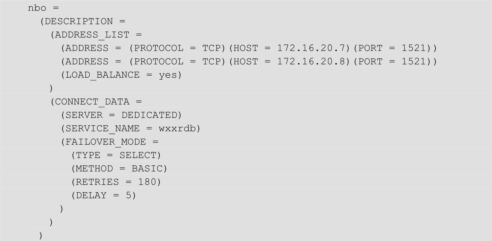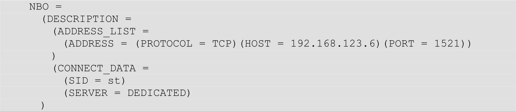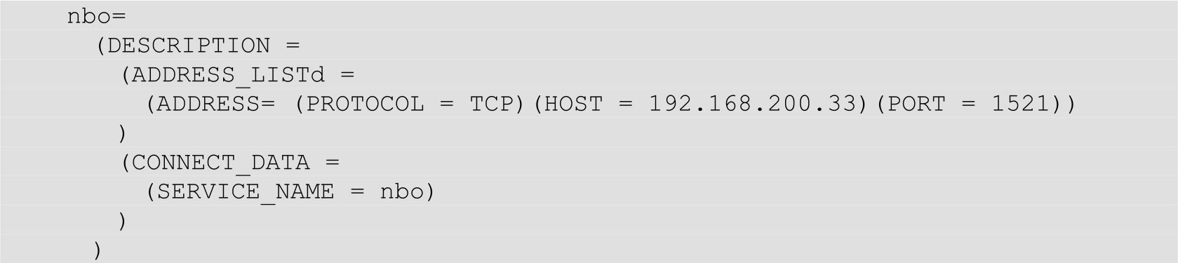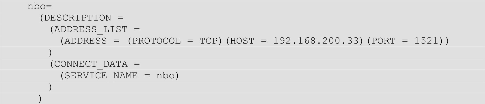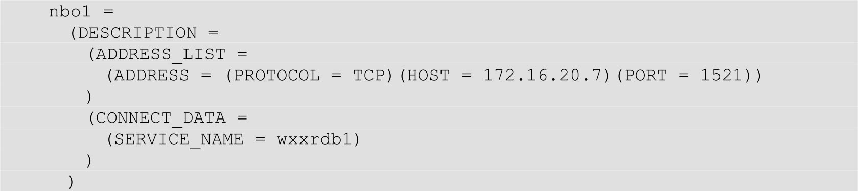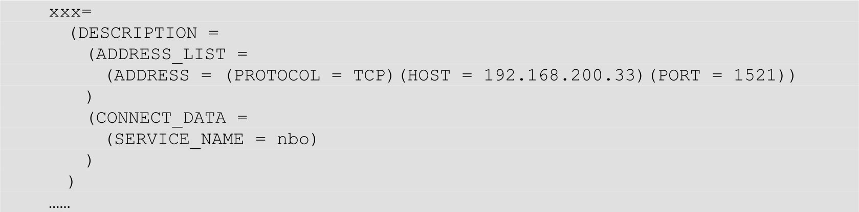 ■ SERVICE_NAME=nbo,也就是SID,指定要连接哪个实例(instance),这里的SID必须和服务器端监听器监听的SID相同。