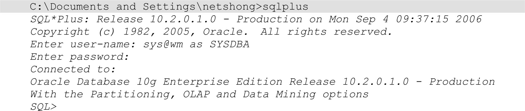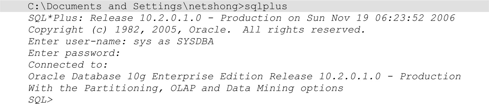 设置完环境变量以后,就可以启动SQL*Plus,登录数据库。