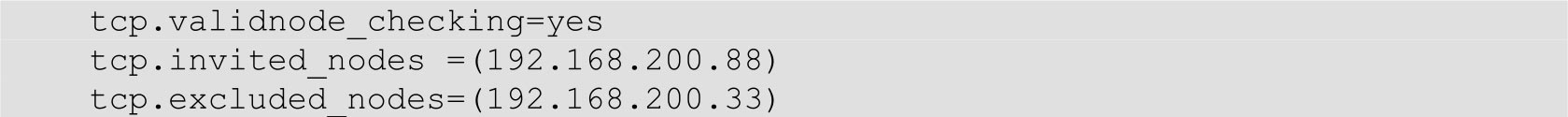 ■ tcp.excluded_nodes=(IP1,IP2,IP3…)表示拒绝哪些IP访问Oracle。