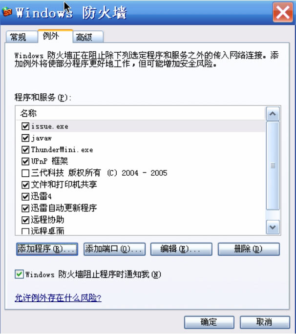 打开Windows防火墙,选择“例外”选项卡,如图4-38所示。