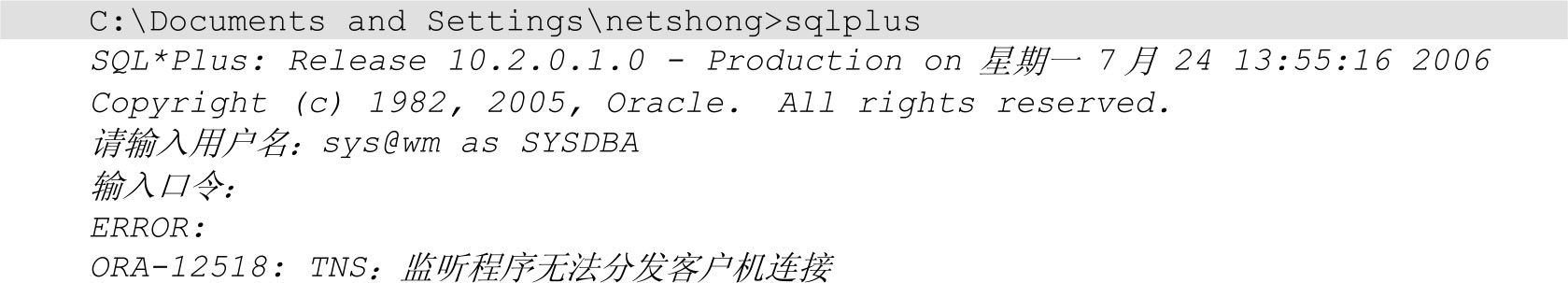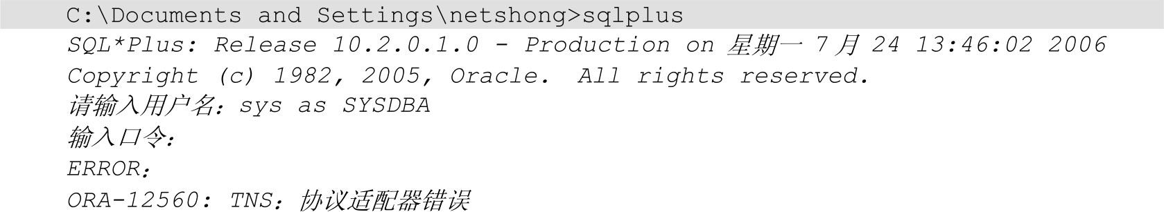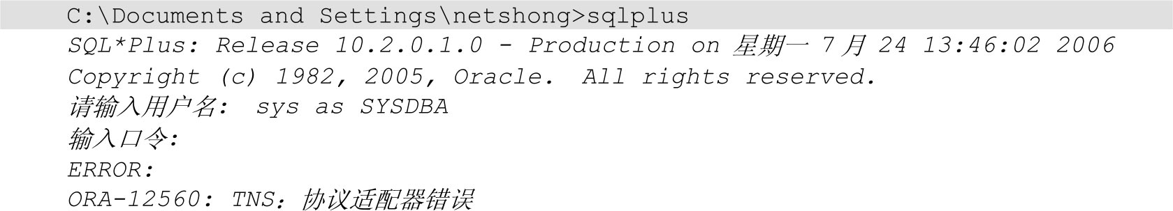 启动SQL*Plus,登录数据库,产生错误,具体过程如下: