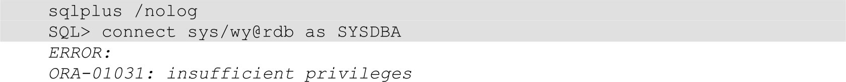 如果出现ORA-01031错误,则说明Oracle试图去找口令文件(password file),但是找不到(口令文件丢失或者用户没有创建口令文件)。