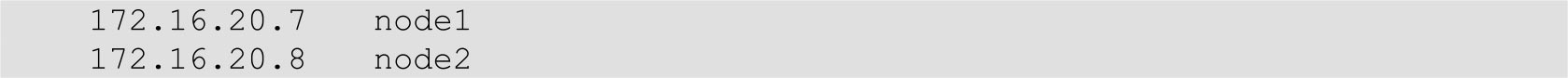 172.16.20.7是第一个节点的IP地址,node1是第一个节点的主机名。172.16.20.8是第二个节点的IP地址,node2是第二个节点的主机名。