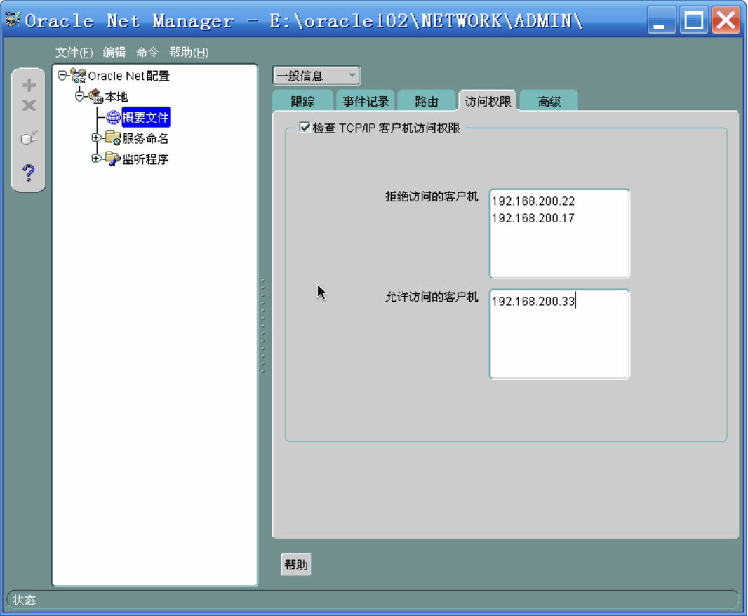 如果手工编辑sqlnet.ora文件比较麻烦,则可通过Net Manager来修改客户端IP地址限制,如图4-41所示。