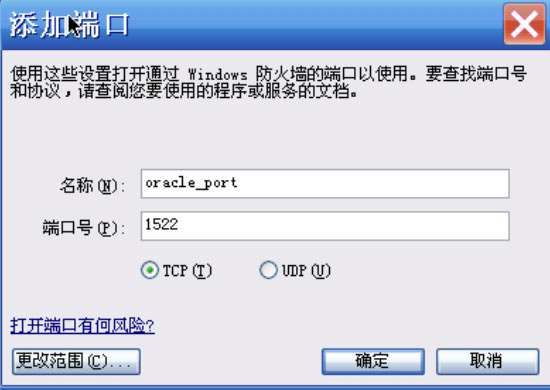在“名称”中输入任意一个名称,如oracle_port。在“端口号”中输入监听器的端口号,如1522。选择监听的协议,一般选择TCP。单击“确定”按钮,配置完成。