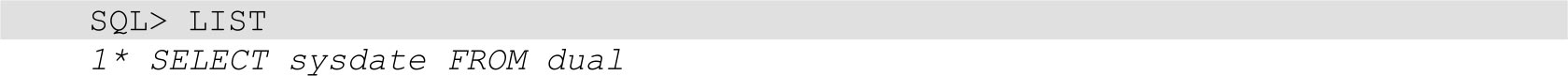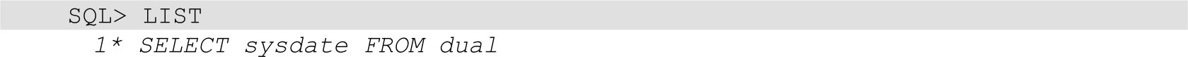 当执行很多命令以后,不确定SQL缓冲区存放哪些语句,这时,可以使用SQL*Plus的LIST命令,查看SQL缓冲区中的内容。