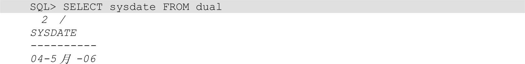 【小贴士(Tip)】 如果SQL缓冲区中没有SQL语句,则输入斜杠(/)会产生错误。