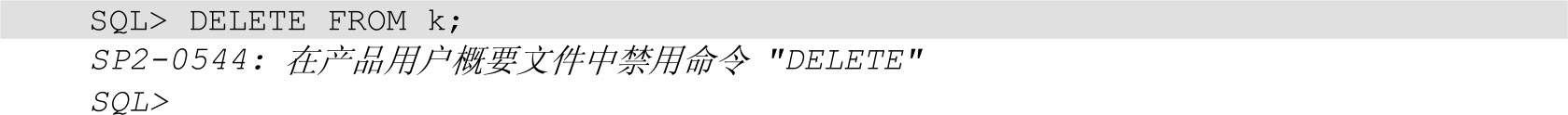 从语句的执行结果可以看出,Oracle禁止用户ddis执行DELETE命令的设置已经生效。