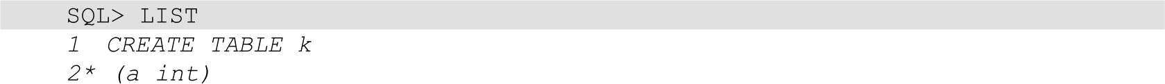 在本例中,SQL缓冲区中存在一条创建表的SQL语句。