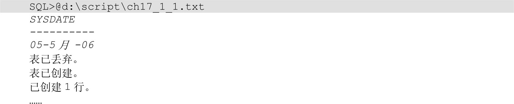 【小贴士(Tip)】 要运行的脚本文件要和SQL*Plus在同一台机器上。运行脚本时,一定要注意脚本文件名的后缀,如果没有指定脚本文件的后缀,则SQL*Plus可能会报告找不到该文件。
