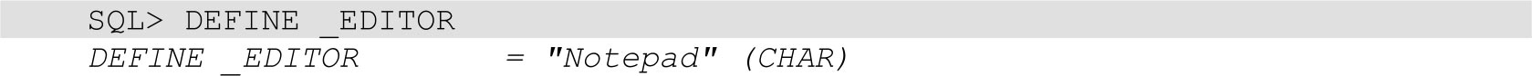 从上面的输出可以看出,SQL*Plus当前使用的编辑器是Notepad(Windows的写字板)。