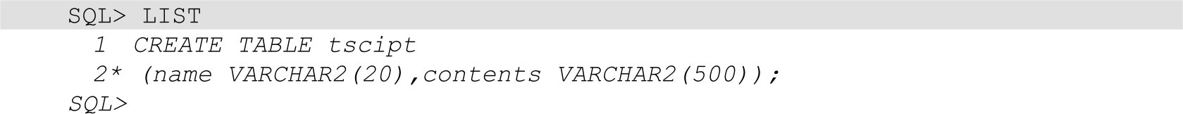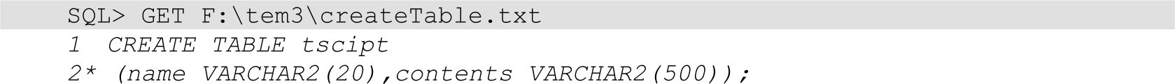 GET命令把脚本文件createTable.txt装载到SQL缓冲区中。