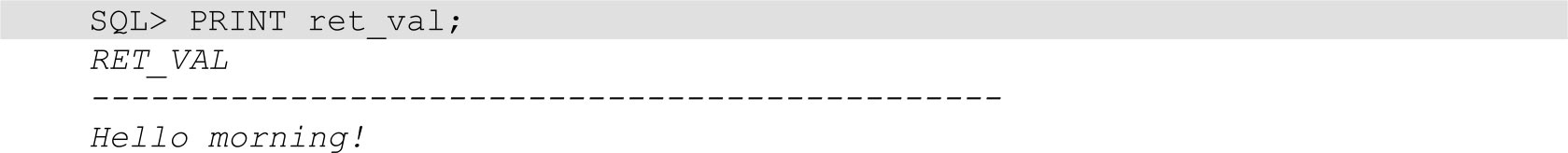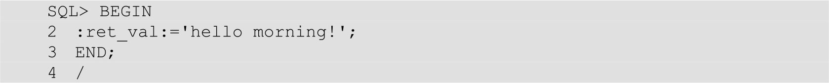 PL/SQL过程已成功完成。ret_val是绑定变量的名称。