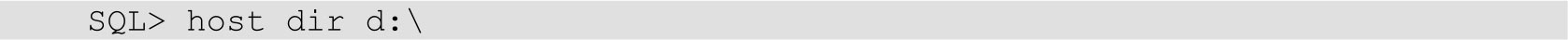 在本例中,在SQL*Plus中执行操作系统命令dir,列出目录d:\下所有的文件。