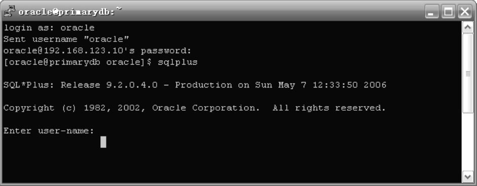 在命令行中直接输入sqlplus,出现如图5-7所示的窗口。