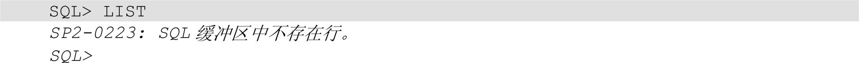 用LIST命令查看SQL缓冲区中缓存的SQL语句。